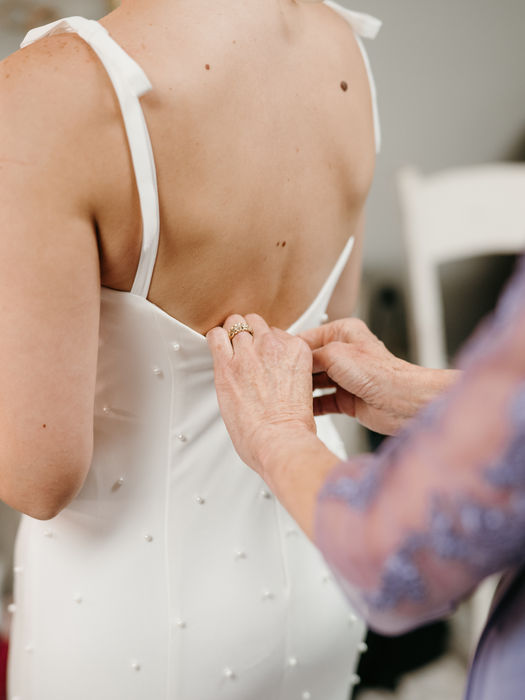Our Wedding Dress Alteration Services Include - Bustles: Adding bustles to lift and secure your train for easy movement during your reception. - Straps: Adjusting, adding, or removing straps for comfort and style. - Hems: Perfecting the length of your dress for an elegant silhouette. - Waist Adjustments: Ensuring a snug and comfortable fit around your waist. - Bodice Alterations: Tailoring the bodice for a flawless and supportive fit. - Sleeve Adjustments: Customizing sleeve length and fit to match your vision. - Zipper and Button Fixes: Ensuring all closures are secure and functional. - Custom Embellishments: Adding or altering lace, beading, and other decorative elements to enhance your dress. - And much more.